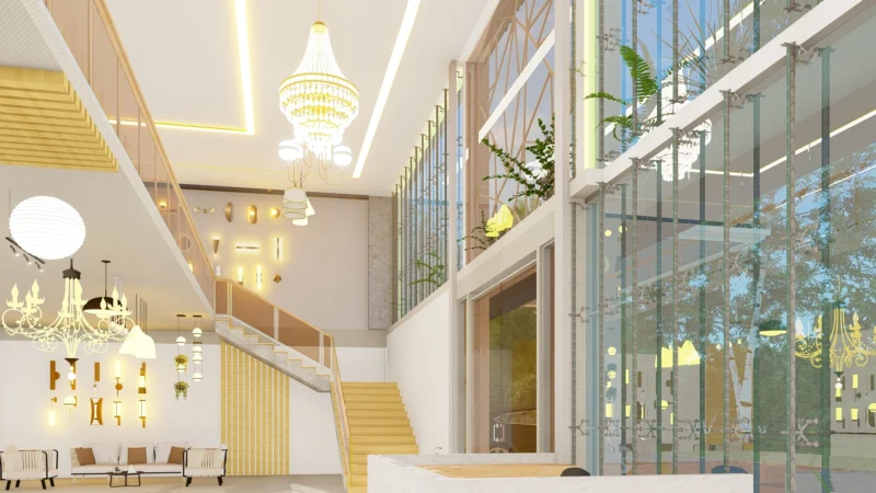 We Balanced Form and Function: We integrated minimalist interior finishes—sleek surfaces and neutral tones—to ensure the architecture never distracts from the brilliance of the lighting products.